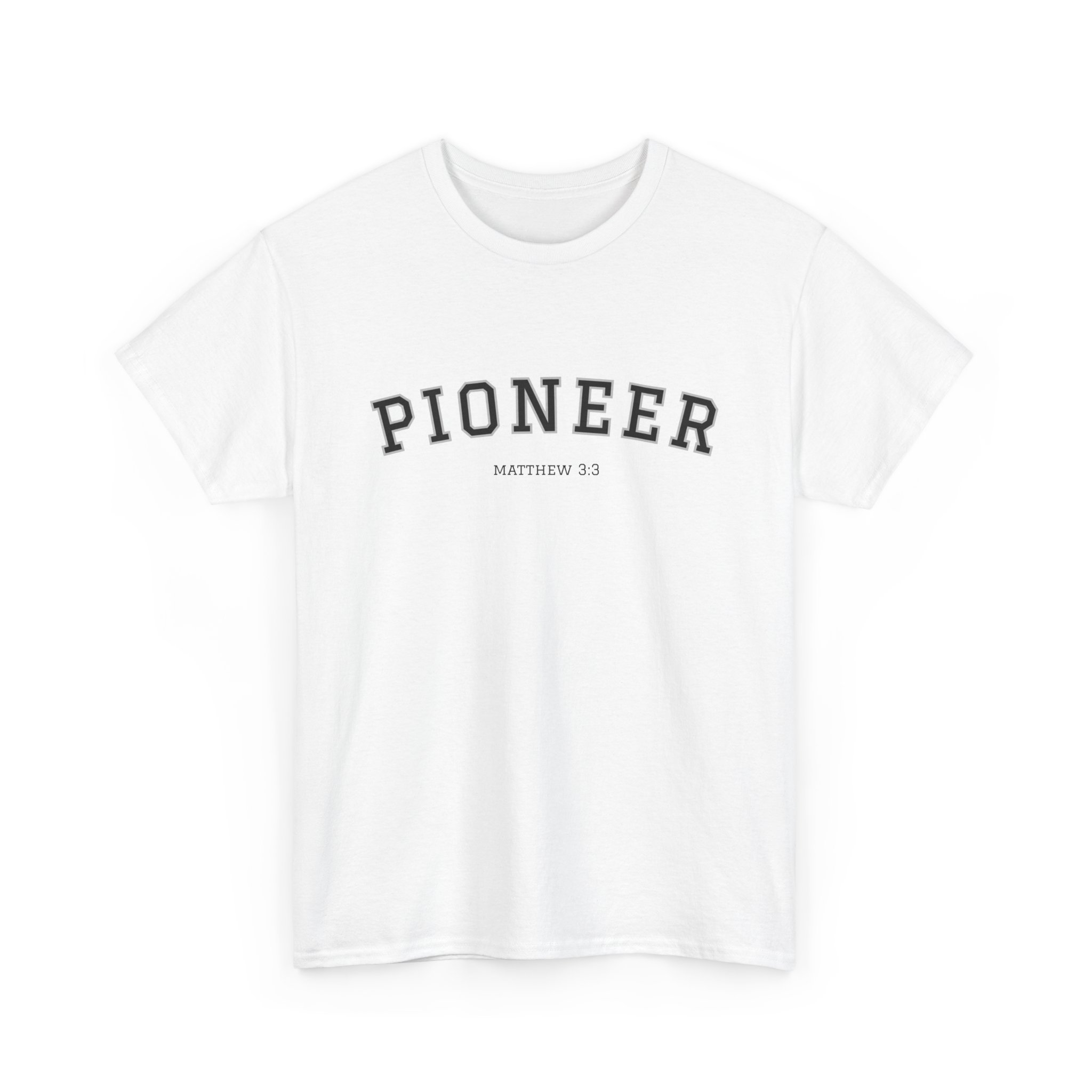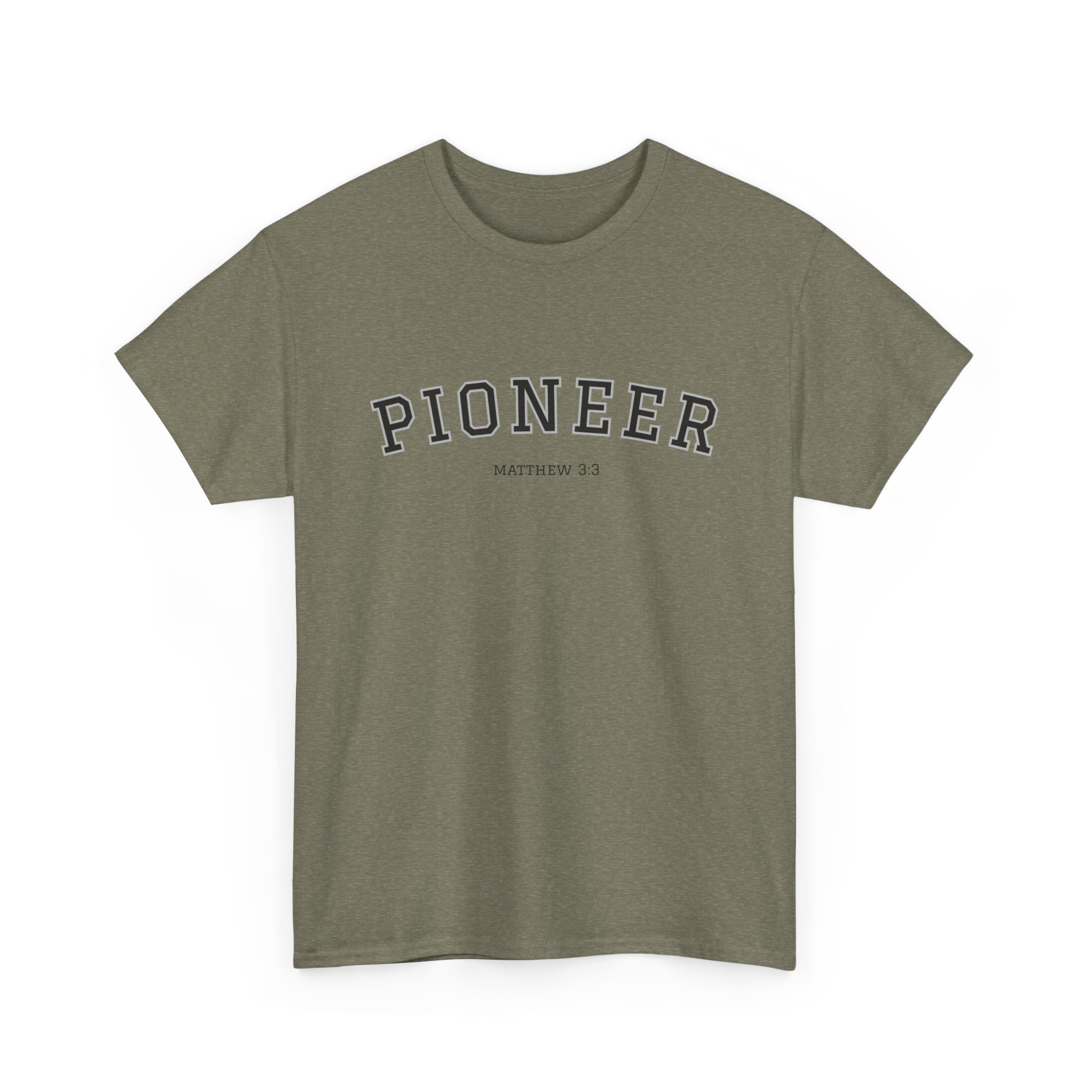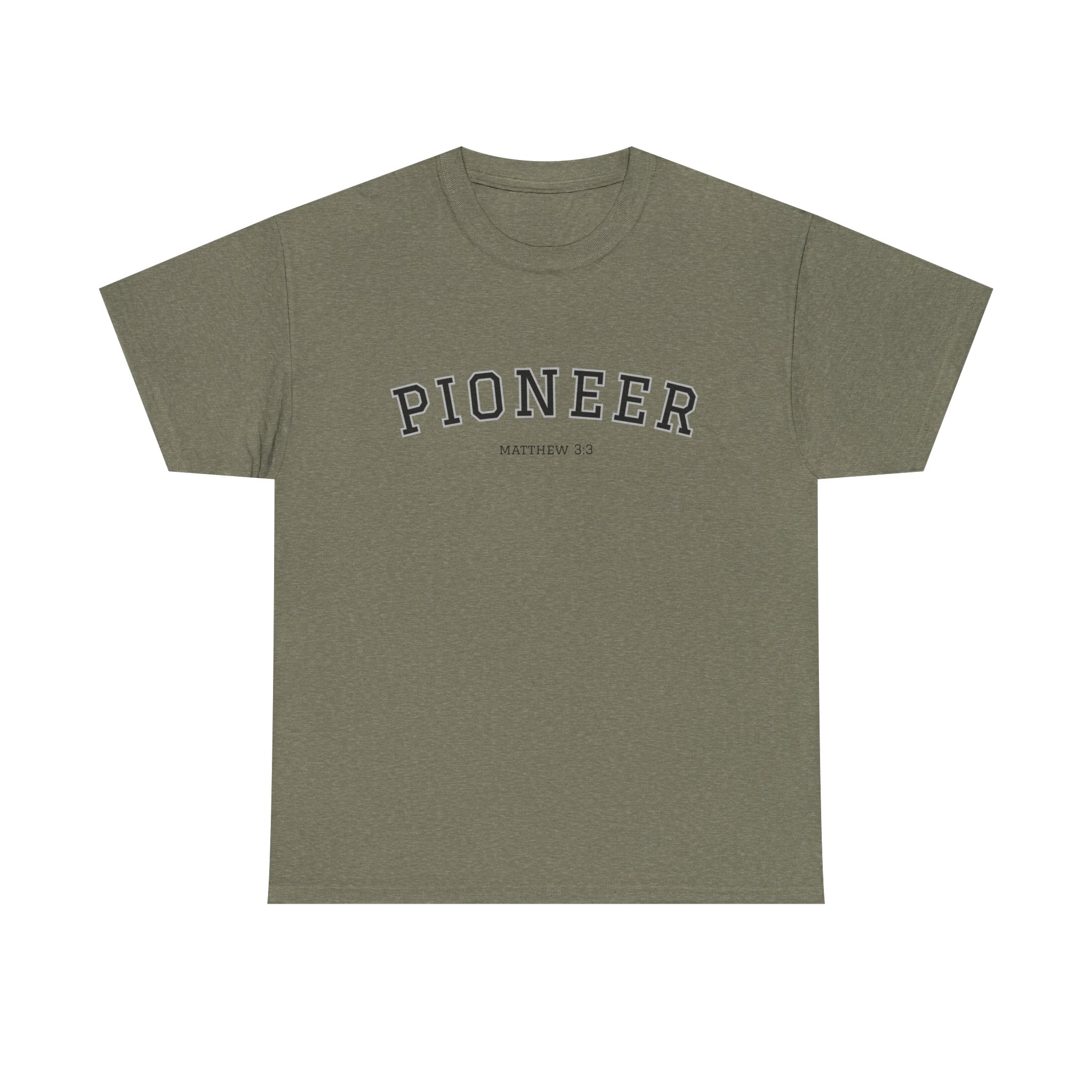 “PIONEER” T shirt featuring the scripture reference Matthew 3:3 “For this is he who was spoken of by the prophet Isaiah when he said,’the voice of one cryinging in the wilderness prepare the way of the Lord, make His paths straight.” This T-shirt was designed for those with the forerunner calling and pioneer anointing.